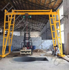具體使用方法為:在污水管道上方放置一臺(tái)固定式的小型龍門(mén)吊,將鋼絲繩電動(dòng)葫蘆固定在龍門(mén)吊的工字鋼軌道上,再連接上臨時(shí)發(fā)電系統(tǒng),將成筐的污物懸掛到電動(dòng)葫蘆下吊鉤上,遙控電動(dòng)葫蘆的手柄,按動(dòng)上升按鈕,使之緩緩上升到地面上,隨后地面上的工作人員再將污物傾倒到垃圾車(chē)上。